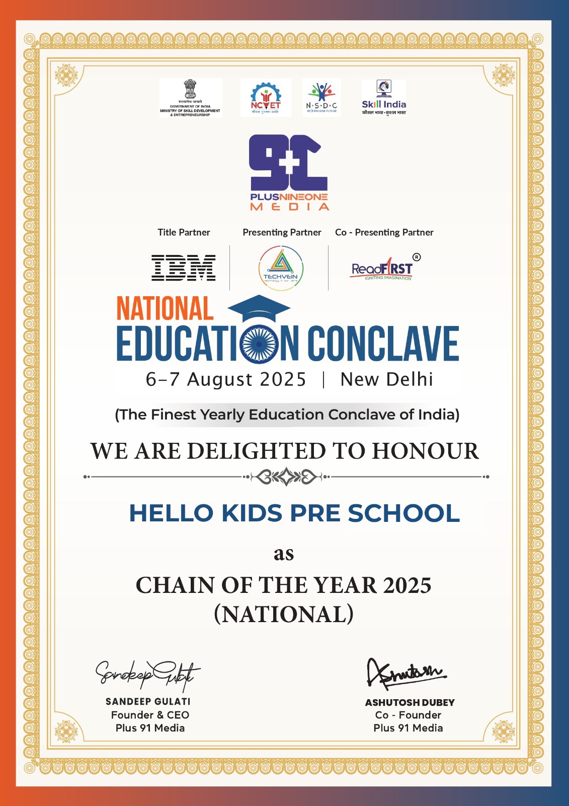Preschool Chain of the Year 2025 - National Education Conclave, New Delhi