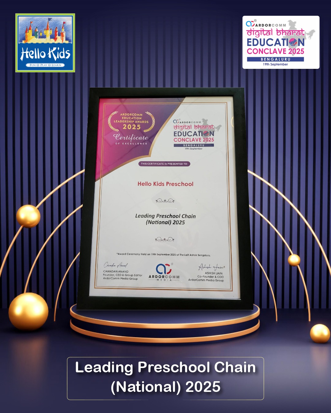 Leading Preschool Chain (National) 2025 - ArdorComm Education Leadership Awards, Bengaluru