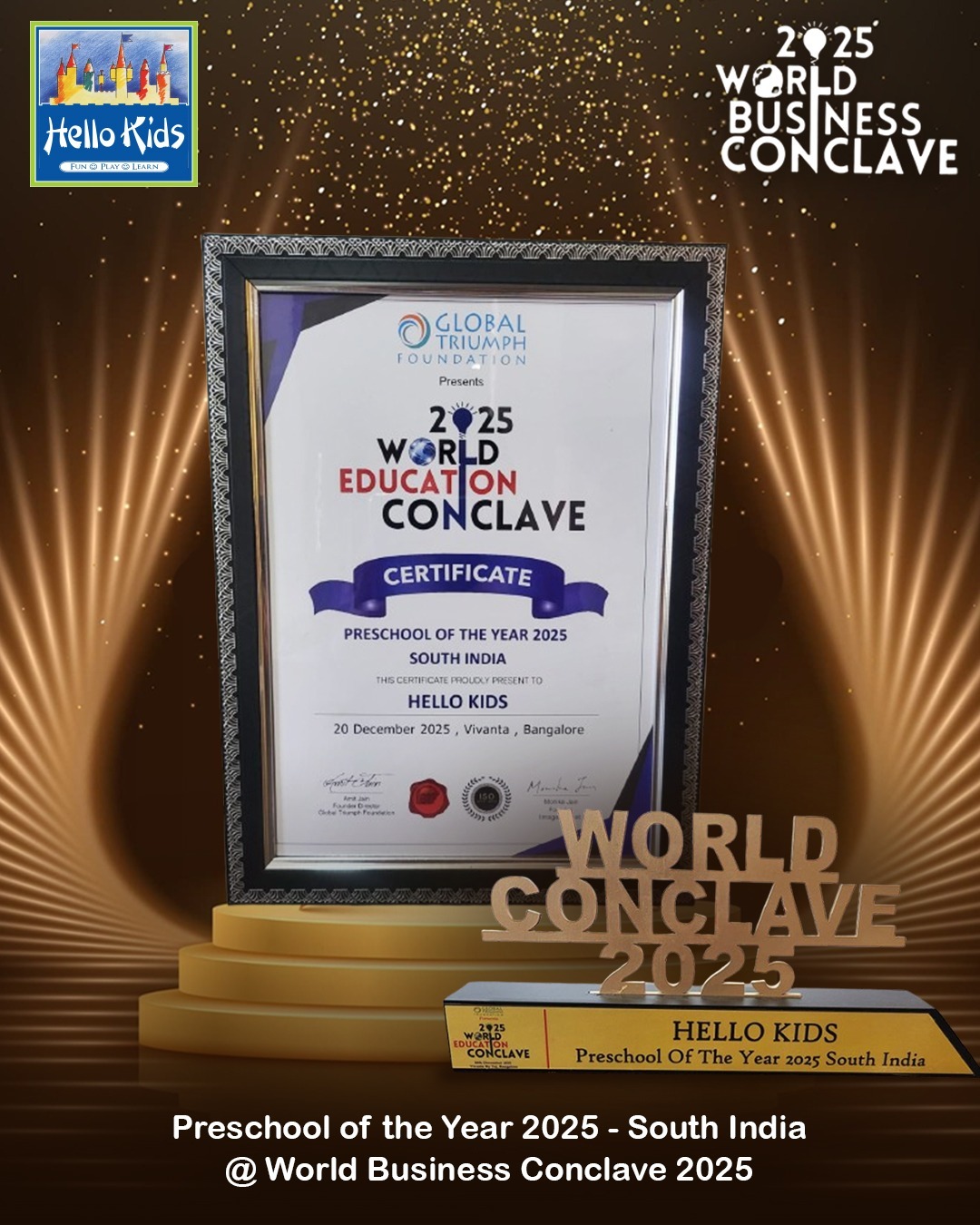 Preschool of the Year 2025 – South India - World Education Conclave 2025, Bengaluru
